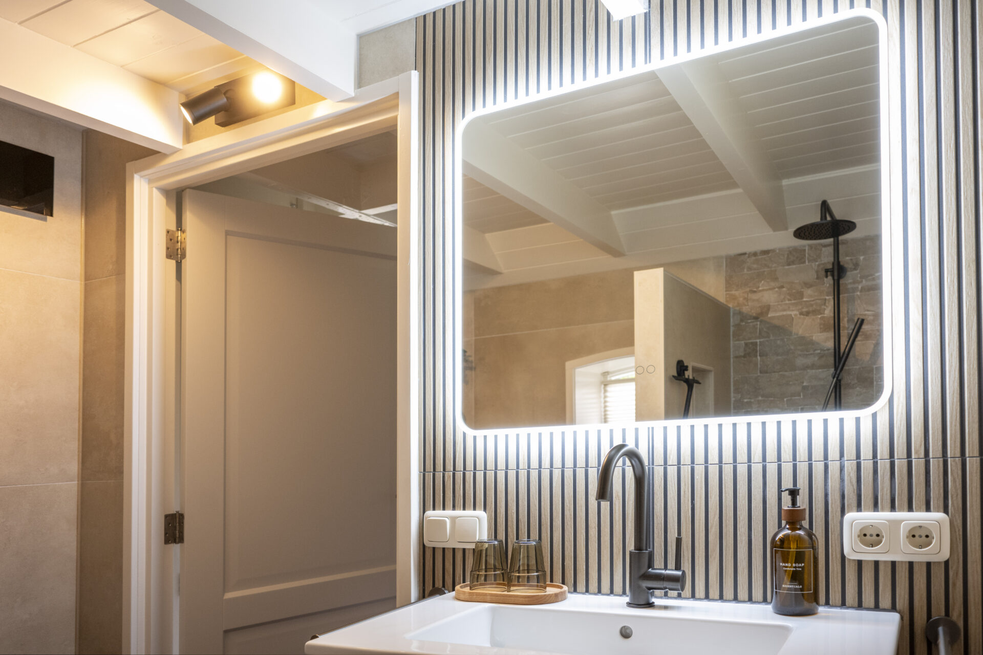 In de hal vindt u een handige kast, kapstok en spiegel. De badkamer is modern en compleet uitgerust met een douche, toilet, een wastafelkast en een verwarmde spiegel.